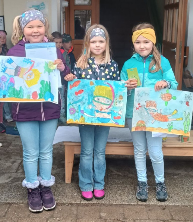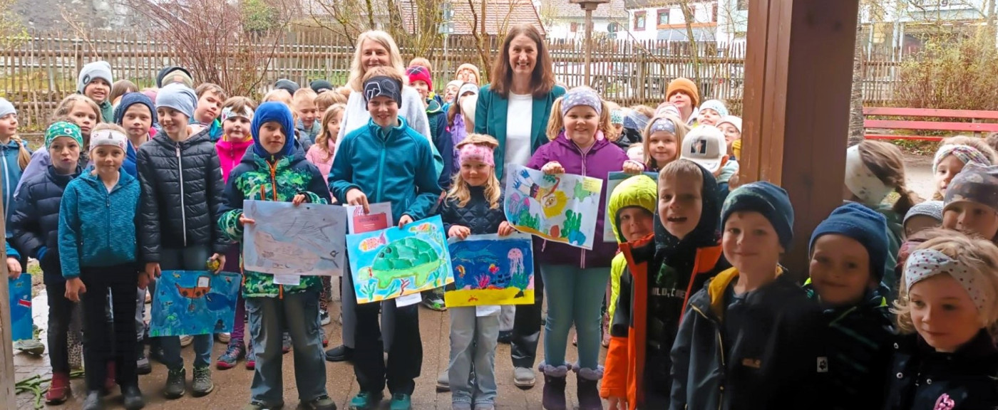 „Meer erleben“ – so lautete das Thema des diesjährigen Internationalen Jugendwettbewerbs der VR-Bank Kempten-Oberallgäu. Kreativ stellten sich die Kinder der Aufgabe und setzten ihre Ideen künstlerisch um. Dabei entstanden sehr fantasievolle Bilder. Eine unabhängige Jury hatte dann die schwierige Aufgabe, die gelungensten Werke zu prämieren. Gespannt warteten die Schülerinnen und Schüler auf die Preisverleihung auf dem Pausenhof. Edeltraud Maurus, von der VR-Bank Weitnau, überreichte zusammen mit Andrea Bölle, Rektorin der Grundschule, den drei Erstplatzierten aus jeder Klasse kleine Preise. Für die 1. Plätze gab es außerdem noch einen Kinogutschein. Für Emily Christoph aus der 2. Klasse heißt es sogar noch weiter Daumen drücken. Ihr Bild „Entdeckung unter Wasser“ siegte auf Allgäuer Ebene, wurde zur Landesjury nach München weitergereicht und hat Chancen bayernweit zu überzeugen. Gewinner waren letztendlich aber alle Kinder der Grundschule, denn für die Teilnahme beim Malwettbewerb erhält die Schule einen Geldbetrag, der den Kindern zu Gute kommt. Vielen Dank an die VR Bank Kempten-Oberallgäu für die tolle Spende!